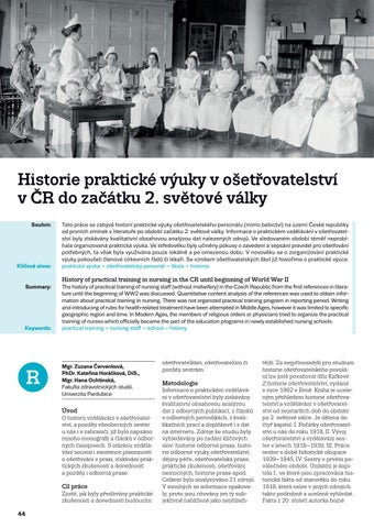 Historie praktické výuky v ošetřovatelství v ČR do začátku 2. světové války Souhrn: