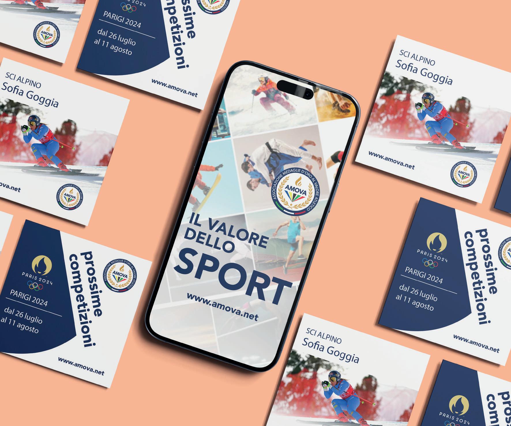 Progettazione materiali pubblicitari e contenuti social per AMOVA - Associazione Medaglie d’Oro al Valore Atletico