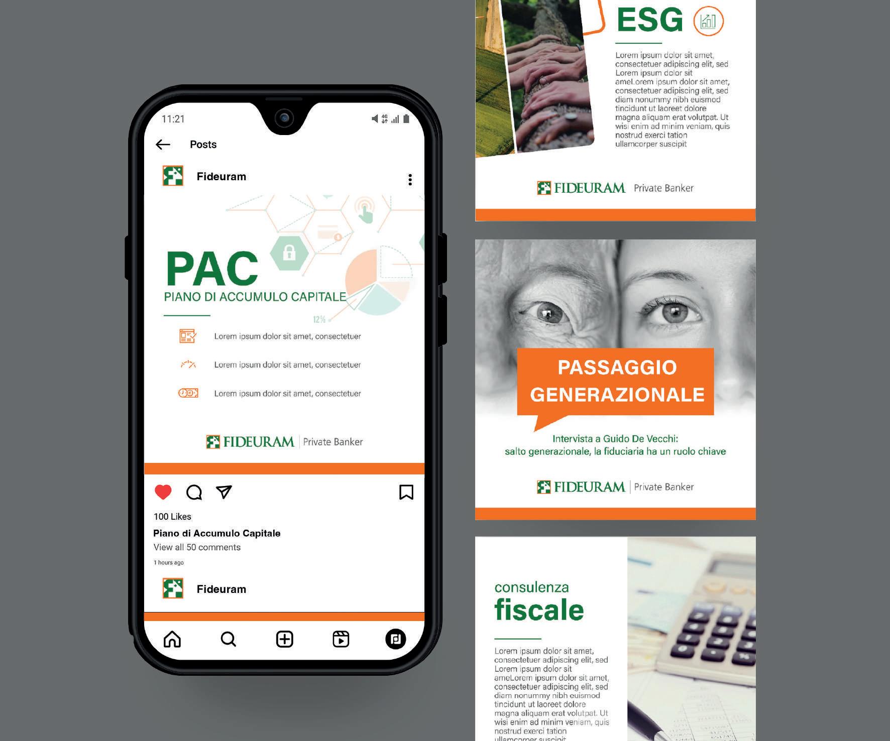 Progettazione materiali pubblicitari e contenuti social per FIDEURAM - Private Banker