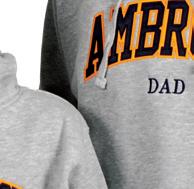 Give your mom and dad the gift of showing their friends how proud they are of their Ambrose child with these parent hoodies. Sizes S –XL. $47.50