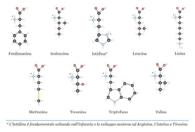 Fig. 2: gli 8/9 amminoacidi essenziali che devono essere assunti con la dieta