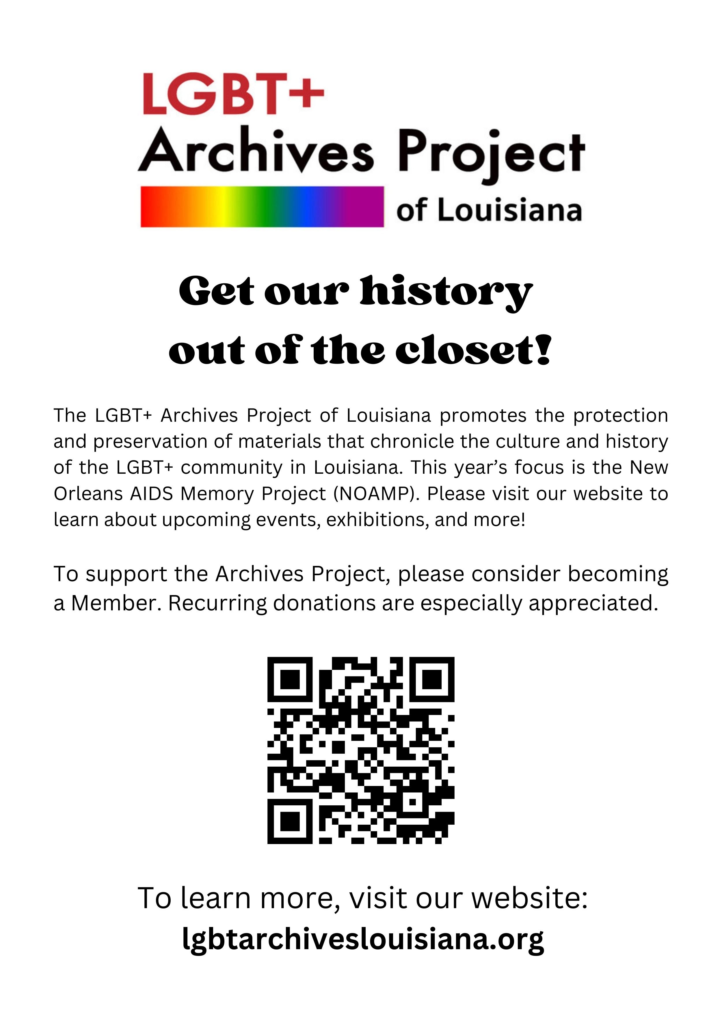 A PROGRAM OF THE LGBT+ ARCHIVES PROJECT OF LOUISIANA