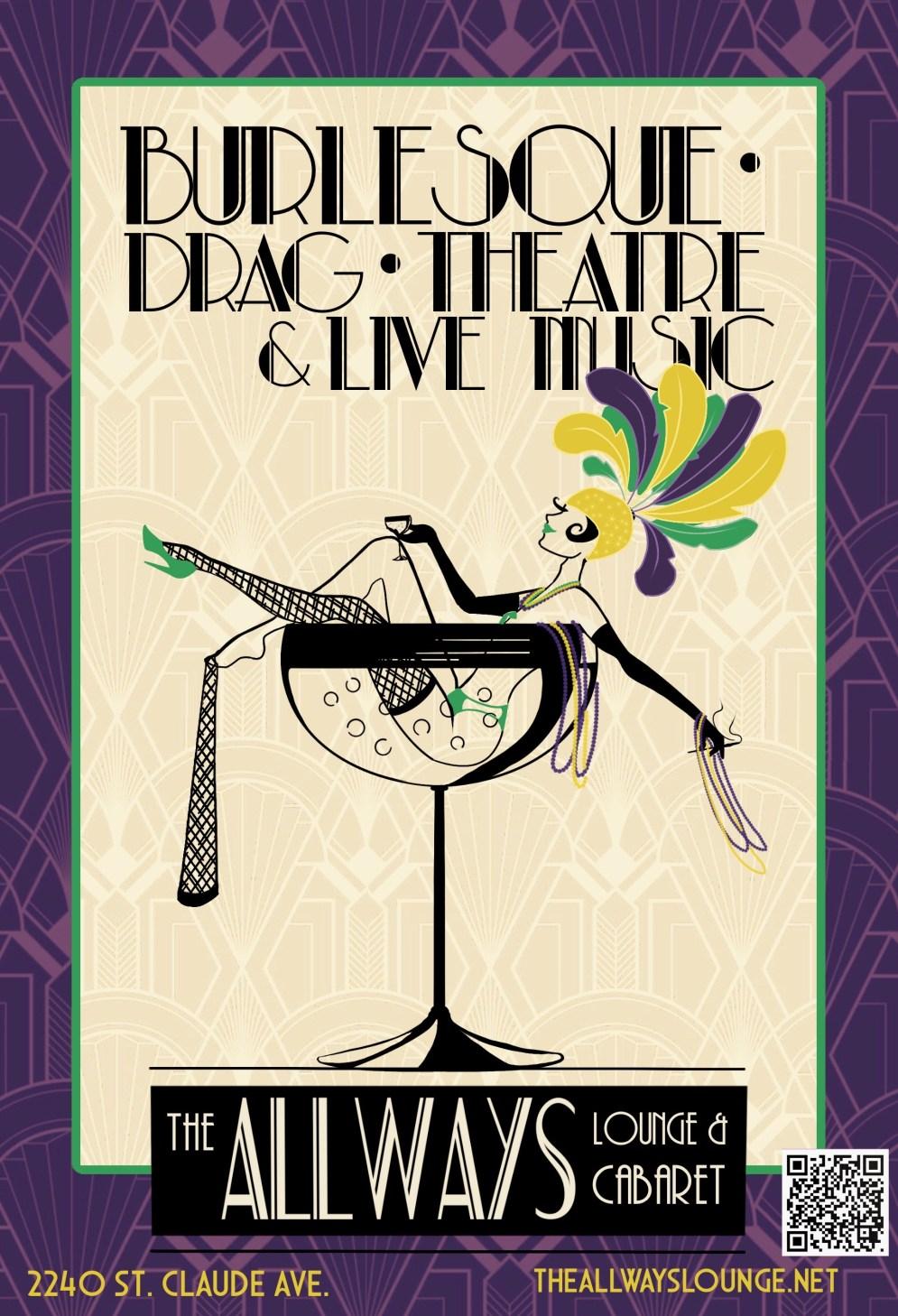 *Bayou Blues Burlesque: The AllWays Lounge & Cabaret; 2240 St. Claude Ave.; 10:30 p.m. Tickets available at eventbrite.com and at the door. An intimate night of live blues music accompanied by burlesque and variety acts. Drink specials by your bartenders and comfy seating to enjoy the art of the strip tease. Music by Miss Oops C. (Cont’d on pg. 10)