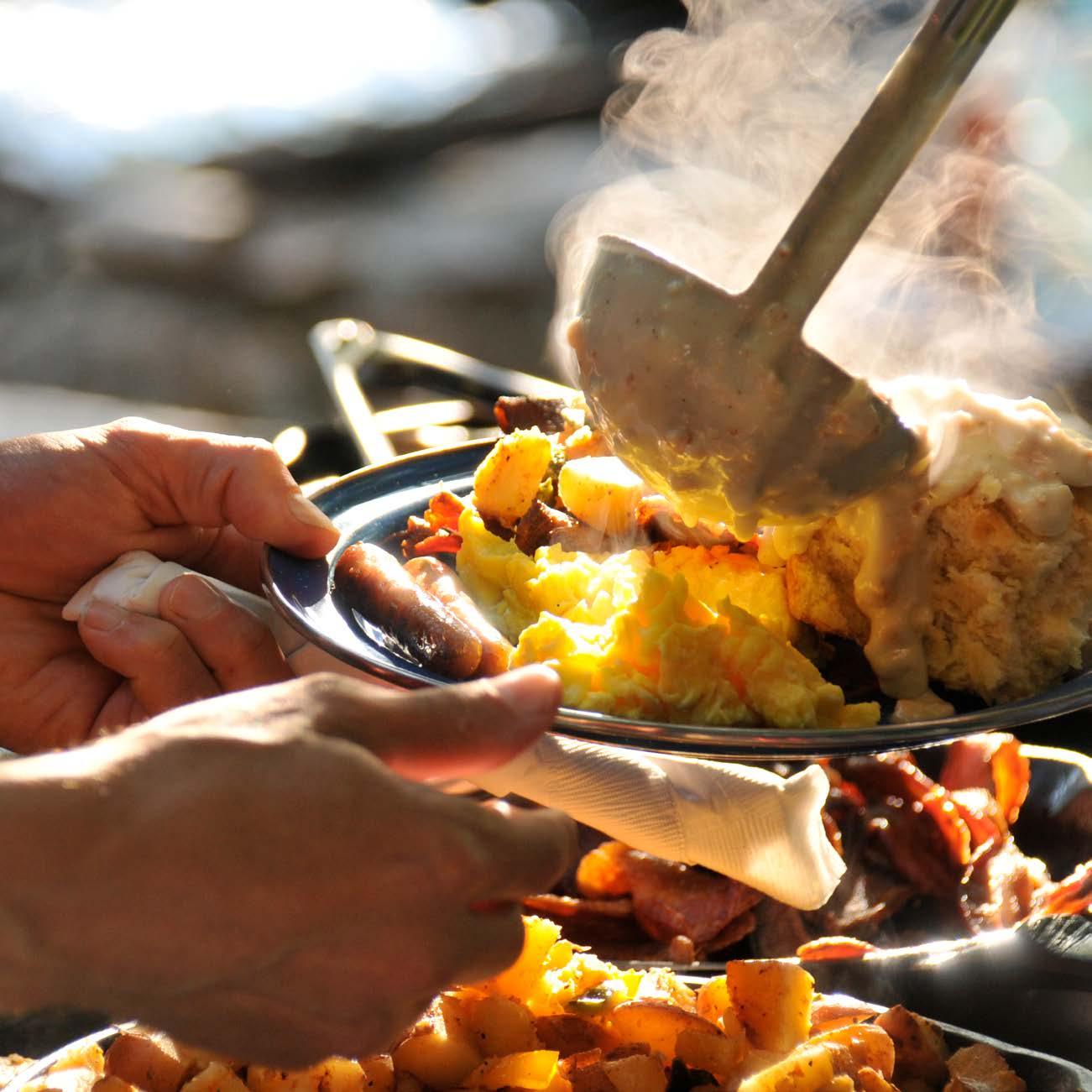 Each Meal Ride offers something different: a cowboy breakfast by a babbling creek, a midday adventure with hamburgers and brats by a secluded cabin, or a dinner that brings you to a barbecue with the lively tunes of a string band and views that stretch on forever.