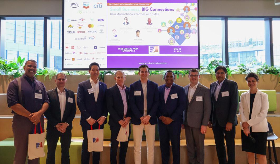 AMCHAM Thailand’s Small Business & Entrepreneurs (SBE) Committee hosted an interactive discussion on how multinational corporations and SMEs collaborated to drive growth and innovation in Thailand. Speakers shared practical insights on partnerships, supply chains, and startup ecosystems, highlighting what large organizations looked for in SME partners. The session concluded with a networking session, allowing participants to connect in a relaxed setting.