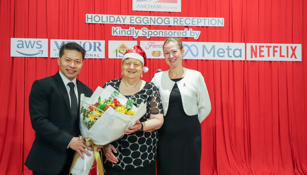 This festive event allowed members to give the gift of education by donating to support Thai university students through the AMCHAM scholarship fund. At the event, we also honored Pojjanee and Sheree, who have been strong driving forces in AMCHAM and are retiring after 22 and 17 years of service. The atmosphere was indeed filled with warmth, laughter, and joy.