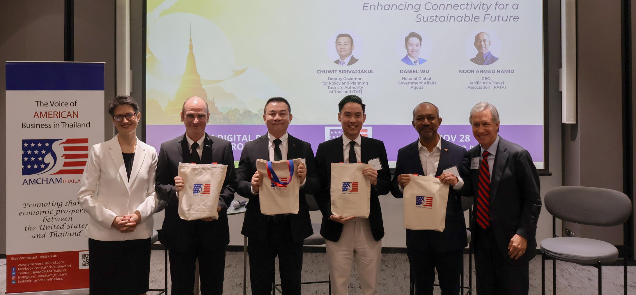 AMCHAM’s Tourism & Hospitality and Aerospace Councils jointly hosted a panel discussion on Thailand’s connectivity and tourism landscape, featuring a government representative and industry experts. The speakers shared insights on Thailand’s tourism outlook, the role of digital technology in enhancing travel experiences, and the importance of infrastructure connectivity, supportive policies, and public–private collaboration in driving sustainable tourism growth, particularly in building confidence in Thailand's tourism sector. The panel was followed by a question-and-answer session and networking.