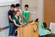 Representatives of the winning schools receive their awards from AMCIS joint chairs Jennifer Hirst and David Milner