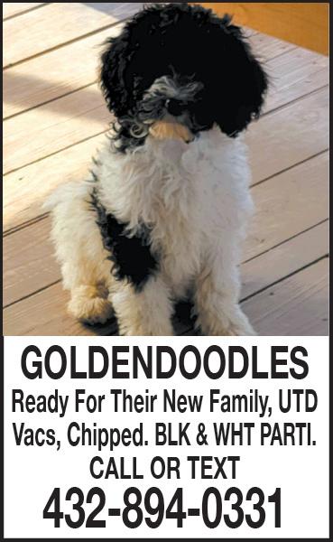 crystalskypuppies.com License #131 PLEASE READ I have lost my Doberman dog & haven’t been able to find a replacement for her, must be adult & housebroken & w/ some training. Call Adams 325-733-2221 TINY DEERHEAD chihuahua puppies for mature households. Shots & vet current. Potty pad & litter box trained. Kid friendly puppies available also. 325-8290821 $300 & up. AKC SHITZU puppies. Ready Now! Up to date on vaccinations. Call Barbara. 325-8295930 STANDARD POODLE, black female about 8 years old. Free to a really good home. Missy is great with children and other pets. Call 325518-7713 AKC STANDARD Rare Red Poodles NOT MIXED. Ready for their new home; 8 weeks old, shots and paper trained. Fat little bundles of Joy! $2000 325-668-1451 Text for Pictures) PLEASE HELP! Free to good home. 6 month old handicap cat female, 2 females 1 year old fixed, 2 male cats, 6 months old,very loving and playful. No longer can keep them. I don’t want them to go to the pound. Please Call or text 325201-3876 and leave message. Will return call. TAKING DEPOSITS Schnauzer puppies. Midland 432-687-1395, 432-557-3976 2 ADORABLE Yorkie Poo’s. 1 female, 17 weeks, 1 male, 11 months. Vaccinated & dewormed. Text for more info or call after 1pm. 325-726-9455 TAKING DEPOSITS on Adorable Snorkie female puppies Midland 432-6871395, 432-557-3976 THE LORD Bless you and keep you; the Lord make his face shine on you and be gracious to you; the Lord turn his face toward you and give you peace. Numbers 6:24-26 MULTIGENERATIONAL STANDARD LABRADOODLES. Parents on premises. Up to date on all vaccinations with a one year health guarantee against genetic defects. Raised with care in our home. Call 254-640-6942 325-695-3700 IN THE MALL 4310 BUFFALO GAP RD ABILENE, TEXAS 79606 TOYS, SPORTS CARDS, FIDGET POPPERS & COMICS SUBMIT YOUR AD BY TUESDAY 6:00PM AMERICAN CLASSIFIEDS Thrifty Nickel Open Monday thru Thursday (Closed on Fridays) • Driver License Restoration • Occupational Licenses • DWI, DWLI, Possession of Marijuana LICENSE SUSPENDED? 3301 N. 3rd • Abilene, TX 79603 325-268-4344 ATTORNEY JOHN W. KENNEDY 10430509 FREE CONSULTATION Complimentary DPS License Status Check LET ME HELP! FOR RENT FOR SALE COMMERCIAL 10430523 2,000 SF OFFICE SPACE FOR LEASE AT CORNER OF BUFFALO GAP RD AND CHIMNEY ROCK 101 Runnels St. Tye Excellent investment property! Corner lot 2 bed 1 bath 1 garage. Commercial or Residential. $165,000 509 Riverside Blvd. Gorgeous 3/2/2 home. $245,000 Eula ISD 11966 Hwy 36 Abilene Tx 3 bed 2 bath + office 3 car garage home on 15 Acres $520,000 2073 Meander 3BR 2 bath large living and kitchen… lots of new! Redone! $1295 mo. 2098 Vine 3 BR 2 bath. Big corner lot. Lots of space! $1295 mo. Duplex/ House 1-1 $615 2-1 $675 610 S. Leggett Under New Ownership/ Management FOR RENT No Deposit Military Welcome HUD Renters Call Us at (325) 677-5625 Call Us at (325) 677-5625 10430552 325-698-3820 www.cookseyrealtors.com 10430566 3334 S 6TH ST. House, 3/1/1, 3rd Bedroom is a Loft, Stove, Refrigerator, Dishwasher, Washer, Dryer, Central Heat/ Air, Fenced Yard, No Pets, 1 Yr $1050 MONTHLY 2081 N 3RD B Duplex, 1/1/1, Gas Stove, Refrigerator, Utilities Paid, Window AC, Yard Care Provided, No Pets, 1 Yr $650 MONTHLY 1, 2 & 3 Bedroom Homes Starting at $500 • Stove, Fridge, W/D Connections • Fenced Yards • Pets Welcome *Some restrictions and conditions apply Meadow Ridge Estates Whispering Oaks Continental Villa Call for Availability 325-692-5006 Close DYESSto AFB 10430352 *WE PAY YOUR UTILITIES ON SOME. A MISSION OF GOD Dear Friends in Faith, Thank you! We are here on Earth to help the ones in need. We pray for the unborn children who have no voice to fight the evil who are persecuting the baby angels of God. Dear Friends we are on a mission called on by our faith. God is proud of those who spread the faith and love for Jesus Christ. We will be called upon by name to be invited to paradise. In Jeremiah 1:5 says, “Before I formed you in the womb I knew you, before you were born I set you apart; I appointed you as a prophet to the nations”. Thank you for your support. GOD BLESS THE UNBORN CHILDREN Telephone Man 10430614 N. 8th & Walnut St. Abilene, Tx Wed.-Sat. 10am - 5pm Come explore the Great Frontier! 10430527 "We Have The KEY To Your New Home!" CALL FOR DAILY UPDATES! www.werentabilene.com 325-690-0123 KEY PROPERTY WILLOW PARK APTS 2404 NO. WILLIS **ALL BILLS PAID!** 1/1- $899/$99 2/1- $999/$99 1 BDRM/1 BATH: 161 S. Pioneer #54- $649/$649 2 BDRM/1 BATH: 19 Dawn Court $759/$400 2301 River Oaks $1,699/$700 3943 Carrera Ln $1,595/$1,000 4 BDRM: 5482 Questa $1199 10430371 **SOME RESTRICTIONS APPLY** FOR RENT 809 East Hwy 80 • Abilene, TX 677-2246 10430237 FREE RENTAL LIST BY EMAIL OR FAX! dalzellrealtors.com Rent homes! For a list of Rental Homes email: homes@abilene.com, or go to www.AbileneAOR.com 2 Bedroom units: $825- Recenlty redone. Updated CH/CA, paint, texture, appliances and laminate flooring. 3 Bedroom units: $895- Updated paint, laminate flooring. One car det. Garage. 3 blks to AHS. $1050- Clyde, 2 bath, doublewide, updated. Outside pet w/ deposit & approval. $1300- Gorgeous updated home. New insulation, sheetrock and refinished hardwood floors. 4 Bedroom units: $1295- 2 bath, laminated fooring and carpet. Storage building n rear and large yard. Commercial unit: Commercial building office space, toilet, wash basin and extra wash tub, the heat is propane with propane connections. Building has loading ramp and large sliding door. The lot is fenced with gates at front and back so you can drive through. Great location near Hwy 277.