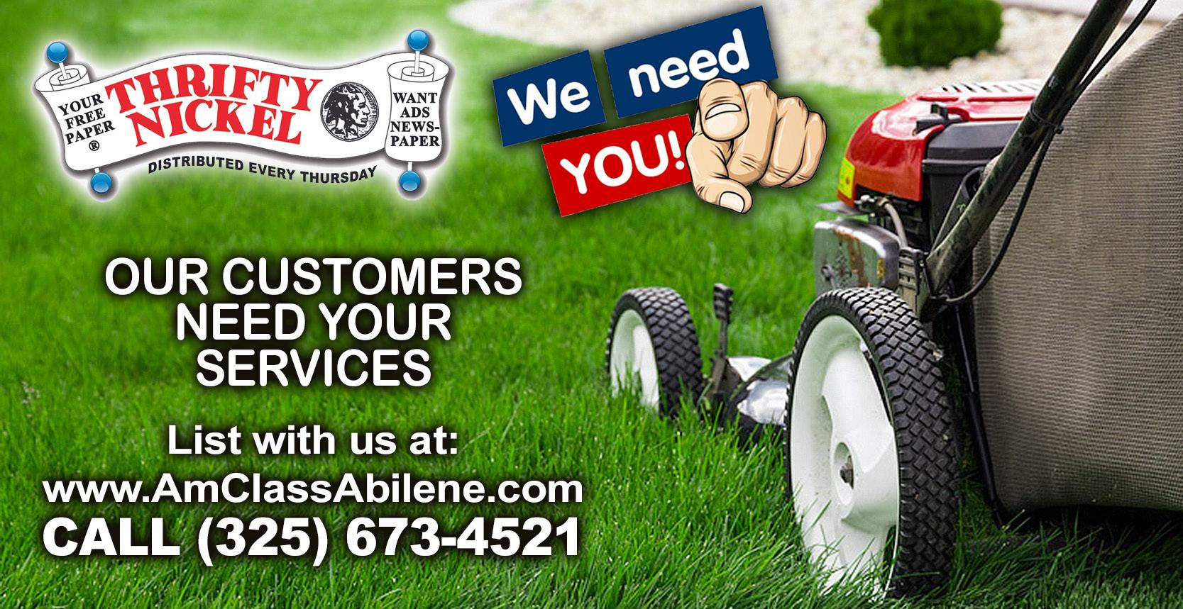 VIEW ONLINE • PLACE YOUR AD ONLINE • www.ThriftyNickelofAbilene.com Monday 8:30am - 4:30pm Tuesday 8:30am - 6:00pm Wednesday 8:30am - 4:30pm Thursday 8:30am - 4:30pm Friday CLOSED VOLUME 43 • ISSUE 3 • JANUARY 26, 2023 (1/26/23 - 2/1/23) 3900 North 1st, Suite 2 (325) 673-4521 HABLAMOS ESPANOL American Classifieds / Thrifty Nickel © (325) 673-4521 Call us to place your next ad. Remember, not everyone is on social media. Print Still Works! HPS 6545 S. US HWY 377 • Stephenville, TX 254-967-9985 WE CARRY SAFES & ACCESSORIES. HUNTING FOR THE BEST SAFE? Delivery & Installation Available Made in America! Lifetime Warranty! SAFE 10430635 10430639 Call Mike Wilcox 325-725-1993 Apply online:www.BMLoil.com NOW HIRING COMPANY DRIVERS and OWNER OPERATORS in Colorado City,Snyder,Midland, Big Spring & OdessaTXAreas Must have Hazmat and Tanker Endorsements $6,000 Sign On Bonus HELP NEEDED! Maintenance worker is needed. Call 325-698-7014. I WANT to Clean your house on a regular basis. 325-305-3612 FOR SALE - Extension ladder, large shop vac, bedroom furniture, large mirror, several table/cabinets good for flat Tv stands, plus storage.. 325-307-8953 no text please. (37) AVON Decanturs,(13) Bill Cosby Vinyl Albums. Call or Text 325518-3322 REWARD $500! Thor is a old English Bulldog. White with black dots. 2 years old. Approximately 60lbs. 925-584-6296 SINGLE COWBOY needed for ranch job. 806-3435353 (or) 806-333-4353 10430537 New Renovated Room: Weekly $43.48 pn ( $350 including tax) 2 guests additional guest $50 per week extra. Weekly Full Payment in Advance *Subject to Availability FREE High Speed WiFi • FREE Microwave in Room • Pet Friendly (Pet Fee Applicable) • FREE Fridge in Room FREE Truck Parking 840 East Hwy 80 • ABILENE 79601 CALL 325-677-8100 COMPLIMENTARY BREAKFAST! $43.48 EconoLodge Inn & Suites 10430443 SONNY JONES WELDING 1902 N Treadaway • 325-672-1731 Mention Ad & get $10.00 Off Repairs • Alloy • Aluminum • Magnesium • Steel Repair & Straighten Cracked Wheels SOCIAL SECURITY DISABILITY/SSI Local: 404-964-7285 Been Denied? Never Ever Give Up! Free Appeal Today! NO Fee EVER Unless Approved! Hearing Scheduled? No Attorney? NEVER, EVER Face SSA Alone! 10430310 THE MALL OF ABILENE 325-695-3700 3532 NORTH 6TH STREET 325-704-3130 POKEMON • SPORTS CARDS COMICS • TOYS 10430596 BUY • SELL • TRADE Blue J Landscape & Tree Service Trimming, Removal, Stump Grinding, Hazardous Jobs & Emergency Services. New & Old Landscapes with a Modern Touch. Total Yard Clean-Ups. 100 mile radius. Insured & Abilene Chamber Member Victor Hernandez 325-518-8031 FREE Estimates 21 Yrs. Experience 10430593 Come Stay With Us! Monthly $750 and Weekly $322 (no tax) ROOM AMENITIES: FREE WIFI Microwave Refrigerator Cable TV Guest Laundry Facility Ground Floor Pet Friendly Trucking Surrounded by all kinds of Restaurants, Grocery & Liquor Stores and Hospital. 3210 I-20 & Pine St. • Abilene, Tx 79601 CALL: 325 677 2687 Always Deliver more than Expected Frontier Inn 10430548 10430513 Come work for the Abilene State Supported Living Center! Visit us at AbSSLC.org if you have questions, or to get a current listing of available Careers Or text “Careers” to 325-255-4442. Start your State of Texas CAREER! AbSSLC is an Equal Opportunity Employer & Provider Abilene State Supported Living Center 2501 Maple • Abilene, TX 79602 NOW HIRING ALL POSITIONS! New Salaries coming March 1st! Including: Direct Support Professionals, LVNs/RNs, Food Service, Housekeeping, Vocational Services, Recreation & Activity Center Staff, and more!! REPAIR • RESTORE RESTYLE Turn Ordinary INTO EXTRAORDINARY 4541 Catclaw Dr 325-513-2743 goldbuyerabilene.com Big Country Gold & Custom Jewelry We buy gold, silver, platinum, diamonds, & precious stones Turn your scrap into CASH! 10430515 Turn Your Scrap into CASH! NOW HIRING: Welders Equipment Operators $1500 SIGN-ON BONUS* Excellent Benefits including Medical, Dental & Vision Insurance, and Matching 401k. Apply in person at 771 Virgil, Abilene, TX 10430759 JOB FAIR: FEB. 1ST 7:00AM4:00PM Newly Remodeled Rooms: All Ground Floor Rooms Banquet Halls Available Refrigerator • Microwave Cable TV • Internet Guest Laundry Facility Weekly +tax * $260 00 5695 S. 1st St. 325-692-3022 10430754 of Abilene Royal Inn
