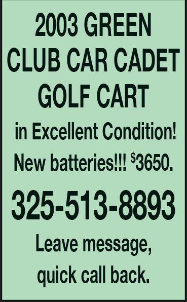FREE HOUSE • 1341 N. 7th Street, 3bd, 1bath • Must See!!!! - (HOUSE MUST BE MOVED). Serious Inquiries Only; CALL or TEXT 325-669-3278. GOT DEBT? $4000 or more? Consolidate your debts & payday loans into one low payment. Less stress & SAVE Money! 1-877-422-4557 HAULING TRASH Brush & Junk Cleaning Garages, Mowing & Demolition You have it, We will haul it. Free Estimates 325-260-6060 12 VOLT Kids Electric Car, Grave Digger, Excellent condition New Battery. $195 325-6695718 APARTMENTS FOR rent! - starting at $500, Continental Villa Meadow Ridge Estates and Whispering Oaks -1 2 & 3 BR homes various sizes and prices, and Call for availability325-692-5006 NOW HIRING CDL Drivers, Health Insurance and other benefits. Per diem paid. EOE. 830-833-4547. HPS-
