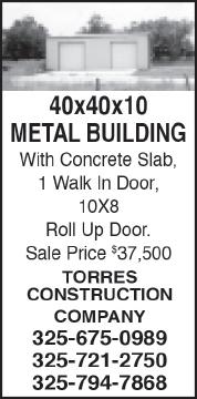 just for fun. We offer Face painting Balloon Twisting. Make your parties special. 4 Pinta Carirtas Facebook olipaintsdfw Abilene 214-777-2544 Great rates APARTMENTS FOR rent! - starting at $500, Continental Villa Meadow Ridge Estates and Whispering Oaks -1 2 & 3 BR homes various sizes and prices, and Call for availability325-692-5006 PORTABLE BUILDINGS Plus,Carports, Shipping Containers, Fences & gates and more, Sales. Diamond J Portable Plus. LLC. Justin Nichols Call us today! 325-225-0367