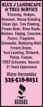 Hedges, Removal, Stump Grinding, Cleanups, Tree Planting, Flower beds, River rocks, Borders, Edging, Concrete, Pavers, Flagstone, Sidewalks, Retaining Wall, French Drains, Yard leveling, Dirtwork, Patios, Fences. FREE Estimates. Insured. 21 years experience. Victor Hernandez 325-518-8031