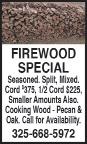 PAGE 2 SELL YOUR BOATS, TRUCKS, FARMING EQUIPMENT, RV’S, GUNS & MORE! APRIL 27, 2023 (4/27/23 - 05/03/23) WWW.THRIFTYNICKELOFABILENE.COM WWW.THRIFTYNICKELOFABILENE.COM MISCELLANEOUS SOCIAL SECURITY Disability/SSI Been Denied? Never Give Up! Free Appeal Today! No Fee EVER Unless Approved! 404964-7285 HAULING TRASH Brush & Junk Cleaning Garages & Demolition. You have it, We will haul it. Free Estimates 325-260-6060 NOW HIRING CDL Drivers with Tanker & Hazmat preferred, Equipment Operators and Laborers Health Insurance and other benefits. Per diem paid. EOE. 830-833-4547. CHIP SPREADER OPERATOR WANTED: Road construction crew. Paid Health health insurance and other benefits. Per Diem. EOE. 830-8334547 FRONTIER INN 3210 1-20 & Pine. Abilene, Texas. $750 monthly and Weekly $322. Free Wifi, Microwave Refrigerator, Cable TV, Pet Friendly, Truck parking. Call 325-677-2687 Always delivered more that expected. 2012 CHEVY Cruze, Best Buy Auto,4131 North 1st Street. 325-437-3677 (We Finance) NO CREDIT CHECK. BLUE J Landscape & Tree Service. Trimming, Removal, Stump Grinding, Planting. Insured. FREE Estimates. 21 years experience. Victor Hernandez 325-5188031 THE LORD Bless you and keep you; the Lord make his face shine on you and be gracious to you; the Lord turn his face toward you and give you peace. Numbers 6:24-26 GWET OILFIELD SERVICE & SUPPLY Rods, Tubing, Casing & Pump Jacks. Pump Rebuilds & Service Work. Call Gene 325-338-0185, Scotty 325-668-4882 HOUSE LEVELERS Needed. Call 325-2086072 1988 JEEP Grand Wagoneer, 117,000 miles. Restoration to be finished May 1st. Serious only! $35,500. Text 325-266-7952 CRAFTSMAN RIDING Mower, 36” cut, new battery, new parts $500. Push mower $100, excellent condition. Console Piano with stool. $400. 325676-2954 REBUILT CARBURETORS, Holleys, Eldebrock, Quadrajets performance parts. Abilene - Sweetwater. 806-632-6936 MID-TOWN SHOP STORAGE, S. 7th & Pecan St. Large Shops & Warehouse Unit E 35’x43’ (1505 Sq Ft) $750. Unit “H” 43’x70’ (3010 sq. ft.)$1750 Office w/RR.Month to Month leases, utilities inc. david@dlphillips.com 325-672-0204 ROMANS 10:9 “That if you shall confess with your mouth the Lord Jesus, and shall believe in your heart that God has raised him from the dead, you shall be saved”. FOR SALE. Log Cabin Set Liquidation. Discounted rate 75% off Now $16,800. The cost was $67,200 We Can Haul. Pay only on delivery. Get Detailed information @ 214-7716887 LADY BUG Cleaning Service. Call us at 325-3388376 5717 QUAIL Run 3/2/2 Vaulted Ceilings, fireplace, $1600 month Call us. Hallmark Real Estate Services. 325698-4440. ED KINNEY TRUCKING Gravel, Sand, Topsoil, Driveways, Tractor. Mobile 325-668-4491 Brad’s Tree Service Abilene’s #1 Rated Tree Service Specializing in Dangerous Tree Removal, Tree Trimming & Stump Grinding. Tree Mulch available Call 325-829-0667 EASTER FIREWOOD SPECIAL Cord $200, 1/2 Cord $115. Also available in Bundles or by the truckload. 110 Cords of Mesquite wood available. Call 361-564-7219 Delivery available for additional fee. PLEASE HELP Me find Rhonda. (widow). I don’t know her last name. Her husband Marine Sergeant didn’t make it back from Vietnam. I met her at a church of Christ building in Abilene, Tx. Robert P. Hall 325-283-6823 e-mail razorstrap46@yahoo.com SEAMLESS GUTTERS$4 per foot. All work guaranteed! Call us at 817-4086810 locally owned ISSUES WITH your Driver License? Need help with Restoration, Occupational Licenses, DWI, DWLI, Possession of Marijuana. FREE CONSULTATION Complimentary DPS License Status Check LET ME HELP! 3301 N. 3rd Abilene, TX 79603 325-268-4344 ATTORNEY JOHN W. KENNEDY DO YOU have a Birthday party