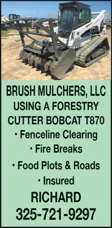 PAGE 4 SELL YOUR BOATS, TRUCKS, FARMING EQUIPMENT, RV’S, GUNS & MORE! MAY 11, 2023 (5/11/23 - 05/17/23) SUBMIT YOUR AD BY TUESDAY 6:00PM AMERICAN CLASSIFIEDS Thrifty Nickel Open Monday thru Thursday (Closed on Fridays) BUSINESS & SERVICES DIRECTORY PLACE ONLINE AT: AMCLASSABILENE.COM OR CALL US AT 325-673-4521 AMCLASS ABILENE.COM CONCRETE SALOMON ROCHA CONCRETE WORK Driveways, Sidewalks, Storm Cellars Cinderblock fences. Call 325-236-2543, 325-660-4146 Creed Johnson 325-721-8095 CONSTRUCTION DIRTWORK DUMPTRUCKS DRIVEWAYS & ROADS BUILT & REPAIRED. Topsoil, Gravel & Bin 10 Hauled, Tandems & Belly Dumps, Dozers, Motorgraders, Loaders, Box Blades. 40 Yrs. Experience. 325-676-0304 ED KINNEY TRUCKING Gravel, Sand,Topsoil, Driveways,Tractor Mobile 325-668-4491 BILLY’S DIRT & CONSTRUCTION Backhoe Work, Septic Systems, Lot Clearing, Demolition. Billy Bilbrey - Owner 325-338-4018 DOZER SERVICE DUMPTRUCKS DRIVEWAYS & ROADS BUILT & REPAIRED. Topsoil, Gravel & Bin 10 Hauled, Tandems & Belly Dumps, Dozers, Motorgraders, Loaders, Box Blades. 40 Yrs. Experience. 325-676-0304 FARM & RANCH CONSTRUCTION BULLDOZER WORK Any type Farm & Ranch Residential or Oilfield. Roads built, Fence Lines, Stock Tanks, Dug or Cleaned 40 Yrs. Experience. 325-676-0304 FENCE LINE CLEARING FENCING KN FENCING CO. Specializing in Barbed Wire, Pipe Fencing, Net Wire, Cattle Guards, Entrances, Gates, Welding & Painting 325-480-6681 juergensilva@hotmail.com www.knfencing.com FIREWOOD HANDYMAN FOR HANDYMAN SERVICES Call Hank at 325-370-4212 “He can do what you don’t have time to do or unable to do!” HAULING HAULING Trash, Brush & Junk. Cleaning Garages & Demolition. You have it, We will haul it. Free Estimates 325-260-6060 HOME IMPROVEMENTS AMAZING GRACE REMODELING No Job To Small Specializing In Exterior Painting, Flooring, Carpet, Tile, Wood, Vinyl, Drywall, Texture Plumbing etc. Free Estimates!!! Call Charlie 325-660-2655 HOUSE CLEANING HOUSE LEVELING LANDSCAPE SERVICES LAWNCARE METAL BUILDINGS METAL WORKS CNR METAL WORKS We are a Family - Owned Business out of Abilene,Texas Specializing in Metal Carports, Metal Buildings Underpinning & Fencing. Contact Chris Brannon 325-514-2747 RV REPAIR RV Mobile Repair Services Over 10 year Experience Call Us Today for your repair needs! 325-733-7263 OILFIELD SERVICES GWET OILFIELD SERVICE & SUPPLY Rods, Tubing, Casing & Pump Jacks. Pump Rebuilds & Service Work. Call Gene 325-338-0185, Scotty 325-668-4882 PORTABLE BUILDING MOVERS WWW.THRIFTYNICKELOFABILENE.COM WWW.THRIFTYNICKELOFABILENE.COM WWW.THRIFTYNICK ELOFABILENE.COM ROOFING SHREDDING SMALL ACREAGE SERVICE: Mowing, Plowing, Fence, Row Clearing FREE ESTIMATES 325-668-5972 TREE SERVICES Brad’s Tree Service Abilene’s #1 Rated Tree Service Specializing in Dangerous Tree Removal, Tree Trimming & Stump Grinding. Tree Mulch available Call 325-829-0667 WELDING BILLY’S DIRT & CONSTRUCTION Billy Bilbrey - Owner 325-338-4018 • Backhoe Work • Septic Systems • Lot Clearing • Demolition 10431323 10431565 JUSTIN NICHOLS 325-225-0367 DiamondJPortables@ gmail.com 9605 State Hwy 36W • Clyde, TX 79510 DIAMOND J PORTABLES PLUS, LLC • Portable Buildings • Carports • Shipping Containers • Fences & Gates • Sales We are a family-owned Business out of Abilene, Texas. Specializing in metal carports, metal buildings, underpinning, and fencing. CNR METAL WORKS Contact Chris Brannon 325-514-2747 10432137