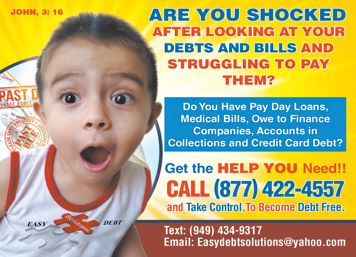 RICHARD’S AUCTION Saturday June 24, 2023 Time 9 am. 1905 11th Street. Snyder, Tx, 79549 https://proxibid. com/richardsauction. www.richardsauction. hibid.com or auctionzip. com Richard Reed. TX Lic #17599 325-5752064 ARE YOU Overwhelmed by your debt’s and struggling to pay them? Take control. Get relief today!!! Let us help you. 877-422-4557