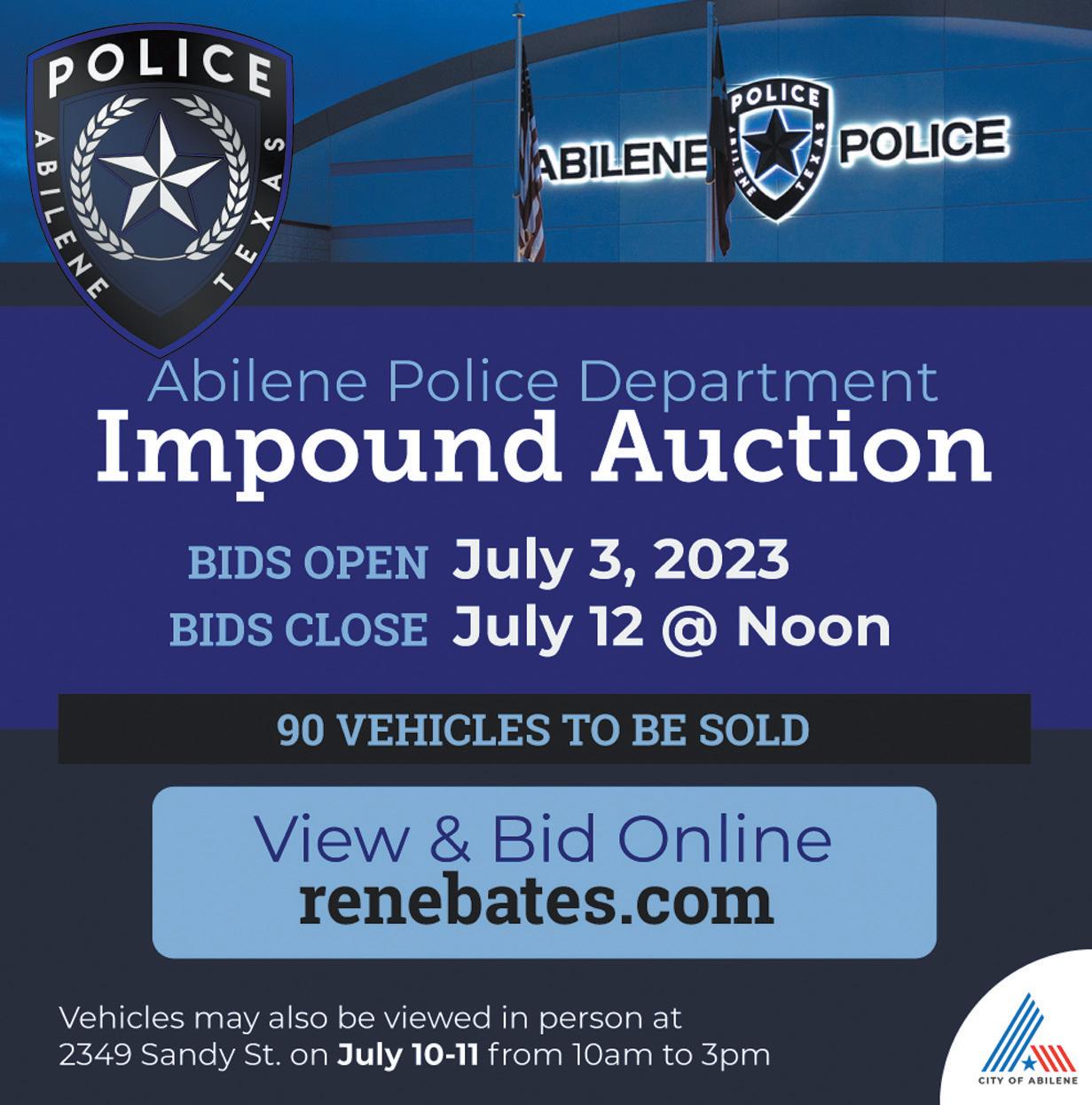 PAGE 8 SELL YOUR BOATS, TRUCKS, FARMING EQUIPMENT, RV’S, GUNS & MORE! JUNE 29, 2023 (6/29/23 - 07/05/23) SUBMIT YOUR AD BY TUESDAY 6:00PM AMERICAN CLASSIFIEDS Thrifty Nickel Open Monday thru Thursday (Closed on Fridays) 325-673-4521 Email: info@amclassabilene.com “Cheaper than Abilene Reporter-News” 100% GUARANTEED! ONLINE: AmClassAbilene.com/public-notices NEED A FREE QUOTE? Public / Legal Notices info@amclassabilene.com 325-673-4521 American Classifieds / Thrifty Nickel © Call us at (325) 673-4521 to place your next ad. Remember, not everyone is on social media. Print Still Works! 10432506 The