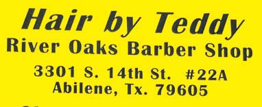 ISD Now Hiring Full Time Bus Drivers. Must have CDL with a P and S Endorsement. Custodians Salary DOE Benefits + Insurance. Apply 6249 Buffalo Gap Road, 325-665-7375 (EOE) NOW HIRING! 2 Barbers are needed who are willing to take walk-ins, licensed, full-time, booth rentalLooking for HUNGRY / Dedicated Barbers! NOW HIRING Food Service Worker II (Parttime available). Laundry Technician II, Custodian I/II. Abilene State Supported Living Center, 2501 Maple, AbSSLC. org APPLY TODAY Nurse II/III. Nurse III (Part time also available). Rehab Therapy Tech IV. Registered Therapist IV - Speech. Abilene State Supported Living Center, 2501 Maple, AbSSLC.org HOUSE LEVELERS Needed. Call 325-2086072 FINANCIAL GOT DEBT? $4000 or More? Consolidate your debts and payday loans into one low payment. Less Stress and SAVE Money! 1-877-422-4557. FLEA MARKETS FRONTIER FLEA MARKET 781 Walnut, Abilene Treasures for all ages TuesdaySaturday 10am-5pm 325-672-2119 FURNITURE VIZIO FLATSCREEN Tv’s 24” $75 & 43” $175 4 Wire Utility shelves 4ft. long $50 each. Oval wood table w/2 leaves $250. Small plastic Storage containers $1. 2-10” small stools $2. Haviland Picard China, 16-5 piece place settings. $400 Waterford Crystal, water flute & Wine glasses $125 each. Other Misc. items. 530-355-4055 local. HUTCH & Table with leaf, bench and 6 chairs $250 Christmas Snowman dish set complete. $150.00 Obo. 325-3201527 2014 AMBLER, washer, dryer, popcorn machine, refrigerator, toys, bikes, baby items, furniture, more items. 10:30am - 4:30pm. Friday & Saturday. 2168 ANSON AVE Saturday 8am -?, TV’s, Musical Instrument, Kegs of grease, Christmas Decorations, new heater, clothes & misc. MEN’S WESTERN HATS, CLOTHES, TOOLS, GRILLS ETC. 4418 CAPITAL AVE. FRIDAY & SATURDAY.