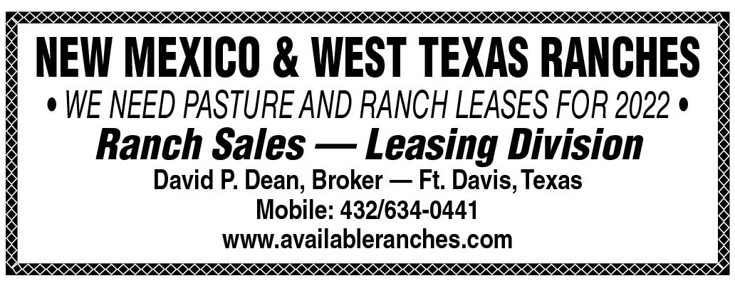 EQUIP I BUY JUNK Vehicles - running or not! Must have title. * 325-5140427 * Get some CA$H Today! ATTENTION DIS ABLED VETS! I am starting a small Horse Therapy Clinic for the disabled Vet eran. I need help, Advice, and a few clients. Also looking for 2 more horses. If you would like to be a part of this, Please Call Tom @ 325-6685972 CATTLE GUARDS & Gates - ALL SIZESJeryl Priddy (325) 9770769 WELLINGTON TRACTOR PARTS INC. SAVE 50-70% on all your farm trac tor and combine re pair parts needs. NEW — USED — REBUILT — we specialize in cyl inder heads - blocks - cranks - new tractor replacement seatsinterior kits - overhaul kits - starters - clutches - water pumps and iin jection pumps. CALL US — WE APPRECI ATE YOUR BUSINESS. Wellington, TX • 800992-5346 GUNS / AMMO FOR SALE! - COL LECTION of Black Pow der Muzzler Loaders with all accessories. 54 Springfield Hawkens, Kentucky Rifle 45 cal., Hawkens 50 cal., 20 ga. double barrel, 58 cal. Antonio-zoli musket (nice), 44 cal. new army pistol (new in box/never fired), bullet molds, new round balls + box es. Melting pot, 2 lead handle to pour lead. Ammunition box, shot gun wads new, sev eral other accessories. SERIOUS INQUIRIES ONLY. $1,800.00 / no checks (Cashier Checks or Cash) 325-529-5579 GOATS BLACK SPANISH Goats Syfran Bred - Nannies & Billies - Three Mill Ranch / Mackey Lange, Mgr. (830) 739-7258 — ma cheyd34@yahoo.com HELP WANTED EXPERIENCED RANCH Hand Must ride, rope, horseshoe, feed and medicate cattle and horses, weld, build fence, re pair drinkers, operate heavy equipment, and do stucco and ma sonry work. Call (520) 455-5507 PART-TIME WORK In Texas: Sutton, Kimble, Gillespie, Kerr and Llano counties. To interview farmers to collect in formation on crops and livestock for the National Association of State De partments of Agriculture (NASDA) in cooperation with the USDA/NASS .Must be dependable, able to meet deadlines, have a phone, a good driving record with ac cess to a vehicle, ability to operate a computer. Agricultural background helpful. Contact, Chester Ahrens 830-459-5064 HIRING EXPERI ENCED Hunters. Must be in good physical con dition, have clean driving record, clean criminal record and provide ref erences.Need seasonal or part time guides for professional hunting ser vice. Hunt multiple spe cies and earn on aver age from $300- $425 per day. Email resume to: jroche@magnumguides ervice.com HORSES - Bought, Sold, and traded / Any kind • Any time! - G.A. Gossett 806-570-1309 For More Info Call: 325-370-1111 or 325-214-1556 BIG COUNTRY AUCTION CO. ABILENE, TX AUCTIONEER LIC. # TX12058 Jeff Vaughn Visit our Facebook, estatesales.net & auctionzip 10429693 AUCTION SUNDAY OCT. 16TH 1 PM #4 Silo View Abilene, TX REAL ESTATE #4 & #5 Silo View - Total of 4 Bedrooms & 2 Baths. Lots of Work Already Done. Will Make Great Weekend Retreat or Home. • Property Sold As Is • Property Sold Cash • Property Sells at 2pm • Property Sold Subject to Owner Approval • Winning Bidder must put $5,000 in Escrow sale day with Balance due at Closing within 30 days • Tommy Simons Broker 325-721-8800 OUTDOOR 2 - Boat Motor & Trailer; Large BBQ on Wheels - Nice; Riding Mower; Yard Tools; Saws; Tools; Craftsman Tool Box; Honda Motorcycle; Harley Items; Dog House; Milwaukee Tools; Electrical Supplies; Baseboard Trim; Plus Much More!! FURNITURE Lg Sofa; Occ. Chairs; Bedroom Suite - Still In Box, Brand New; Shelves; Washer & Dryer; Much More!! MISC. Barbie Collectibles Lots; Lots of Sound Equipment; Stage Lighting; Speakers; Sound Boards; 100’s of Halloween Decorations; 100’s of Christmas Decorations; Plus More!! Lots Here Folks!!! Bring Trailers. Must be Moved on Sale Day! ESTATE AUCTION For More Info Call: 325-370-1111 or 325-214-1556 BIG COUNTRY AUCTION CO. ABILENE, TX AUCTIONEER LIC. # TX12058 Jeff Vaughn Visit our Facebook page for details. 10429695 Sat. Oct. 22, 2022 10AM LOCAL ATTORNEY ESTATE 881 E Hwy 80 Abilene, TX Watch Next Week’s American Classifieds for complete list. PAINTINGS & ARTWORK SUPER FURNITURE • WATERFORD JEWELRY • COINS • PLUS MORE! Estate Has Been Moved To Our BuildingWOW! Super Nice!!! Rector Farms Retirement Auction Saturday Oct. 29th - 10 AM Knox City, TX This is a retirement sale for John & Barbara Rector. Located in Knox City, Texas. Address to be announced. https://www.northtexasauctionsandrealestate.com/equipmentfacts.htm Onsite & Online Bidding available. Photos and list of items to come soon! Online Bid Here: https://www.northtexasauctionsandrealestate.com/equipmentfacts.htm FOR MORE INFORMATION CALL: TODD WASHINGTON 806-269-7800 10429711 10429670 Saturday Oct 15, 2022 10am VIEW: 9:00AM @1905 Cottonwood Ab, TX 79601 The White’s and their new furniture are in Abilene. These are the things that won’t fit in the new house and yard. +++++++++++++++++++++++++++++++++++++++++++++++++ COKE: Dozens of Coke things. One large sign and several small ones. Pedestal table and 4 Soda Parlor Chairs. Throws, Glasses/Calendars/Stool/Trays/Figurines/Santas; Lots Pics! COWBOY: Rocking Horses, Chalkware OX Pulled Covered Wagon, Wood & Metal Décor as: Boots/Wagons/Horseshoes/Stirrups/Rugs Ropes/Shelves/Painted/ ”Photo Hole”Cowboy Sign, MISC!! ++++++++++++++++++++++++++++++++++++++++++++++++++++++ RED/WHITE/BLUE (RWB) Décor: Signs/Trunk/Crates/Wreaths/Benches/ Uncle Sam/Lady Liberty/Tables/Lamp/Wood Cut Outs, MORE!! +++++++++++++++++++++++++++++++++++++++++++++++++++++++ MISC: Jewelry, Tom’s 10¢ Vending Machine, Double Sleeping Bag, Apt Fridge, “Big Bertha” Golf Clubs, Plastic Storage Pcs, “Ross” Bicycle, Metal Tricycle, Childs Picnic Table, Metal Child’s Table w/Fold Chairs, “Interstate Battery” Sign; Kitchenware; Red Enamelware (Pots & Pans), /Plastic/Bowls; Canister w/Bread Boxes; Wood Flip Lid Canisters, Syrup Servers/Grinders; Milk Glass Spice Jars, Tins, Flatware, Sm Appl, Glasses, Baking Pans; Etc! +++++++++++++++++++++++++++++++++++++++++++++++++++++++ YARD: Dozens Metal Yard Art as: 