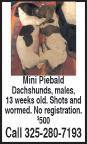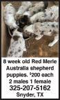 HERD Puppies. Very nice quality. Regis tered, shots, guaran teed, references. 325669-8210 REGISTERED SMALL Pomeranians & Sheltie puppies. 1st shots & wormed. 325829-2943, 325-3385491 3 BEAUTIFUL Tiny 6 week female Yorkie poos. 75% Yorkie 35% poodle. Dad is fullblood Yorkie. Mom & dad un der 3lbs. Will be ready in October. 8 month toy Yorkie-poo. Teacup male Shorkie. Serious Inquires only. Please text 325-726-9455 call after 1pm.