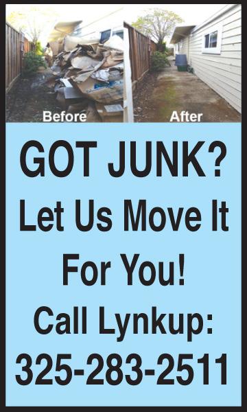 TRASH Brush & Junk Cleaning Garages, Mowing & Demolition You have it, We will haul it. Free Estimates 325-260-6060 HOME FOR