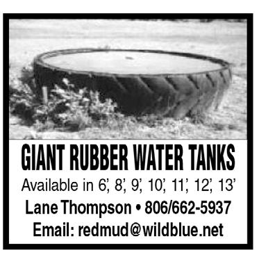 16ft. Overhead Tank . Will hold 1600 bushels of corn. Asking $5500. 254-4424100 100% TEXAS Long horns - Heifer Bulls / Registered Bulls and Cows / Heifers - Roping Stock - Trophy Steers • Stonewall Valley Ranch 512/454-0476 or 830/644-2380 SHOW QUALITY Boer goats - wethers, does. Born April-May. 325-365-6424 MULE HARNESS Donkey to sell or trade. Mule is 15 hands, gen tle. Located Old Glory. $1500 obo. 940-6139154 Lv. message. FOR SALE Bantam ducks. Call 325-7250233