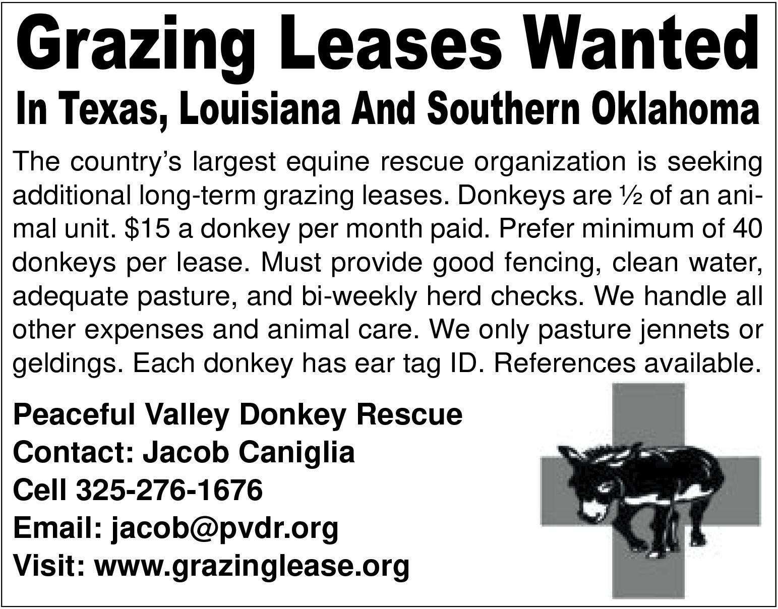 GRAZING LEASE need ed for cow/calf operation. Long term lease preferred. Okay with improving and repairing roads, fencing, pens, etc. References available. Call: 210-3814249