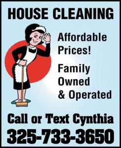 I CLEAN HOMES in Baird, Clyde and Abilene. 325-386-4259 DOVE HUNTING Lots of Birds, mostly Whitewings, $75 day. 325-280-7278 FOR SALE: Entertainment Stand, Kitchen Cart, Cedar Chest, Mini Fridge, Decorative Bricks, and other Home Items. Call or text 325-513-4738. 1998 INTERNATIONAL w/Belly Dump Trailer, Asking $18,500 / Strong C12 Cat Engine. Too much to list. Call or 817320-7428