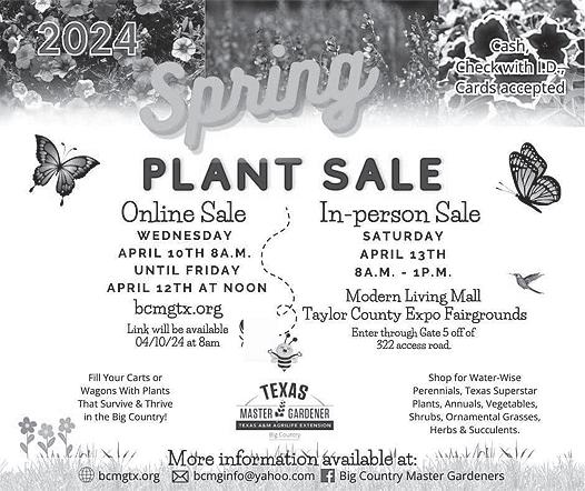 8:30-3:30 (Sun.) April 14th • 1:00-4:00 Like and Follow Us on Facebook! 325-665-1262