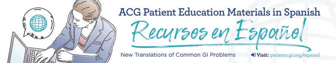 Sunday Learning Luncheons Bonus Sessions (separate registration required) Twelve (12) Learning Luncheon Bonus Sessions will be offered on Sunday on topics including health disparities among patients with chronic liver diseases; how do I approach the patient with diarrhea?; evaluating elevated LFTs; gastric premalignant conditions - updates from the guidelines; elevated pancreatic enzymes - incidental, drug-induced, pathogenic, or autoimmune?; cannabis for gastrointestinal disorders - everything you wanted to know, but were afraid to ask; gut dysbiosis and the role of fecal microbiota transplantation in GI disorders; advancing your colonoscopy skills - integrating EMR, water colonoscopy, and CO2 into your everyday practice; optimizing diagnosis and therapy of H. pylori - an ACG guidelines-based approach; management of intra-abdominal and perianal abscesses and fistulae in Crohn’s disease - antibiotics, biologics, drainage, or surgery?; revenge