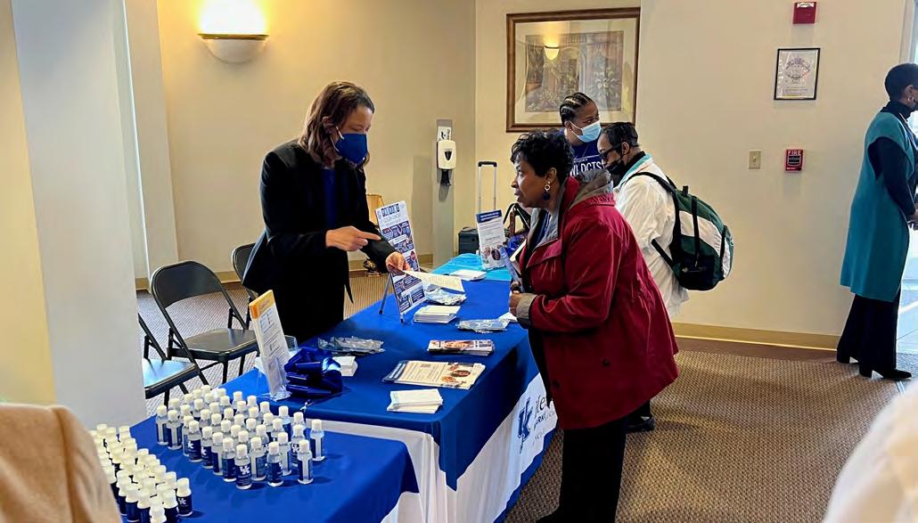 The Faith Leader/UK Healthcare Collaborative For Colorectal Cancer Awareness Month, the Faith Leader/UK Healthcare Collaborative sponsored numerous events to engage and educate Black and Brown communities, spearheaded by Darwin L. Conwell, MD, MS, FACG. Each weekend in March, an outreach event was sponsored at a different Black/African American church. This culminated in a Holistic Health Awareness Day with UK Healthcare’s Office of Diversity, Equity, and Inclusion, in partnership with faith leaders and a Crucial Conversations Panel with faith leaders and doctors. Their event activities included health and wellness resources, A1C and blood pressure checks, and a tour of an inflatable colon.