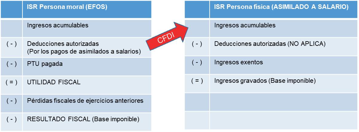 En resumen, los supuestos EFOS expiden comprobantes que amparan operaciones inexistentes, con la intención dolosa de que el perceptor (EDOS) les dé un tratamiento fiscal de deducibilidad y/o acreditamiento, lo que nos lleva a colegir que la práctica de emitir comprobantes fiscales que amparen operaciones inexistentes siempre será para pretender comprobar la obtención de ingresos y que la contrapartida serán deducciones. Por tanto, la expedición de comprobantes fiscales en términos de lo que dispone el artículo 69-B, párrafo primero, nunca podrá representar una deducción para el que los expide, y mucho menos podrá aplicarse a las personas físicas que obtienen ingresos por prestar servicios independientes, por los cuales optaron en su momento por considerarlos como “asimilados a salarios”, en términos de lo que dispone el artículo 94, párrafo primero, de la Ley del Impuesto sobre la Renta, habida cuenta de que dichos contribuyentes en términos de la ley en cita, no están obligados a expedir comprobantes por los ingresos que obtengan; en este caso quien sí lo está son los pagadores de los servicios contratados. Por lo tanto, podemos colegir que el criterio de la autoridad es totalmente incorrecto y, por tanto, deviene ilegal, tal y como se señala en la tesis mencionada con antelación. Al respecto, observemos el siguiente esquema que representa nuestra interpretación: