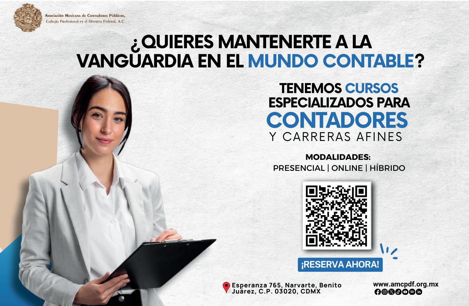 Para ofrecerle un mejor servicio recuerde que es obligatorio reservar el curso que desea tomar y realizar con anticipación el pago en cualquiera de las siguientes modalidades DEPÓSITO O TRANSFERENCIA ELECTRÓNICA EN LAS SIGUIENTES CUENTAS INBURSA, S. A. (ASOCIADOS:50038857014 más referencia (número de asociado), CLABE para transferencias 036180500388570141 / NO ASOCIADOS: 50038953341, CLABE para transferencias 036180500389533417). RAZÓN SOCIAL: Asociación Mexicana de Contadores Públicos, Colegio Profesional en el Distrito Federal A.C. NOTA IMPORTANTE: En el caso de realizar el depósito referenciado en sucursal bancaria, además del dato de su referencia (número de asociado), agregar el dato del número de convenio para depósito referenciado empresarial de AMCP 88800000862-0. **Favor de enviar copia del comprobante a facturacion2@amcpdf.org.mx* con los siguientes datos: Nombre del participante, Nombre y fecha del curso de interés y Datos de Facturación.** En cancelaciones con menos de 48 horas antes del evento, se aplicará una penalización del 25% sobre la cuota del mismo. La opinión de los colaboradores es responsabilidad exclusiva de los mismos y no refleja necesariamente la posición de la Asociación Mexicana de Contadores Públicos, Colegio Profesional en el Distrito Federal, A.C. sobre los temas que se abordan