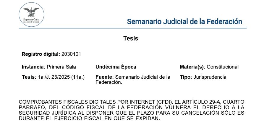 La SCJN Declara Inconstitucional Limitar la Cancelación de CFDI al Mismo Ejercicio Fiscal en que se Emite
