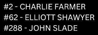 ENTRIES AS OF TUESDAY 18TH MARCH AT 1.00PM