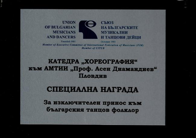 отличие специалността „Балетна режисура“ в