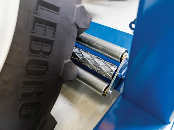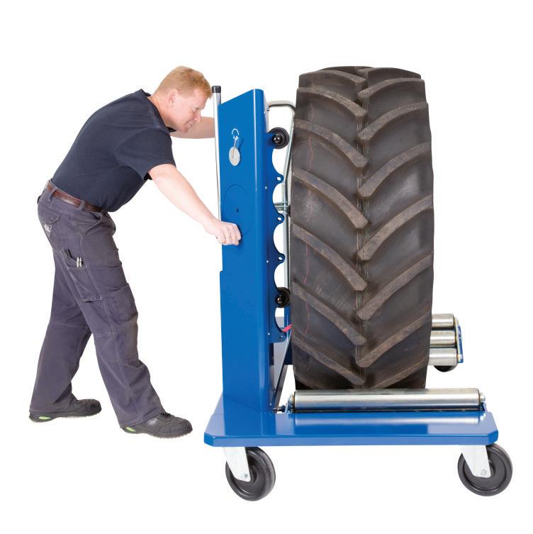 ∙ Lifting arms with roller bearings for easy rotation of the wheel into correct position