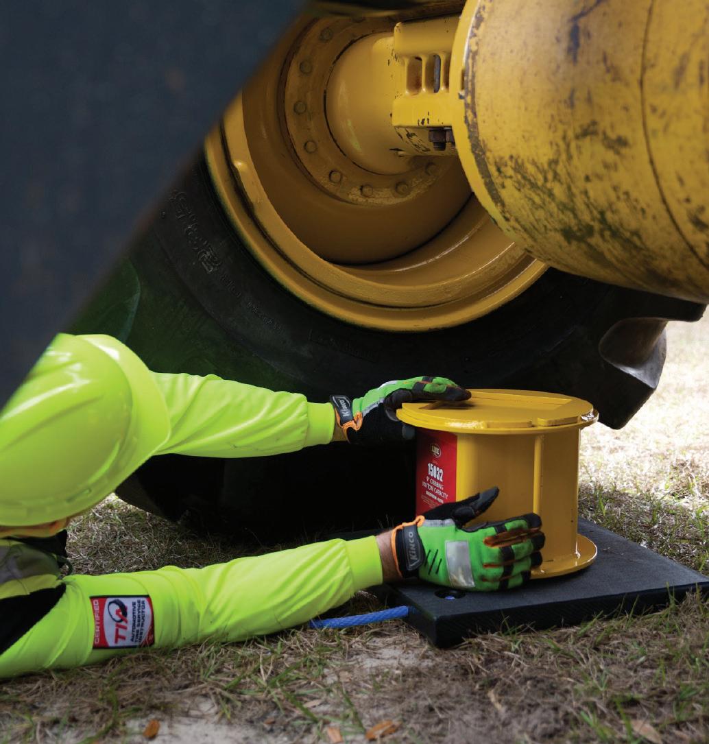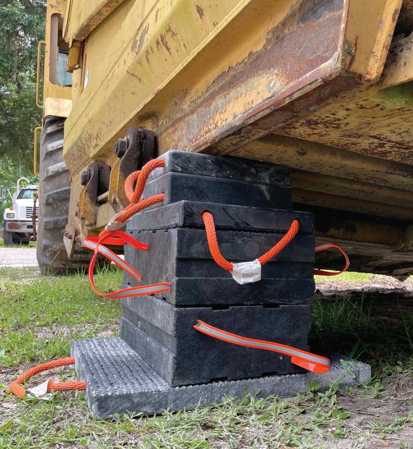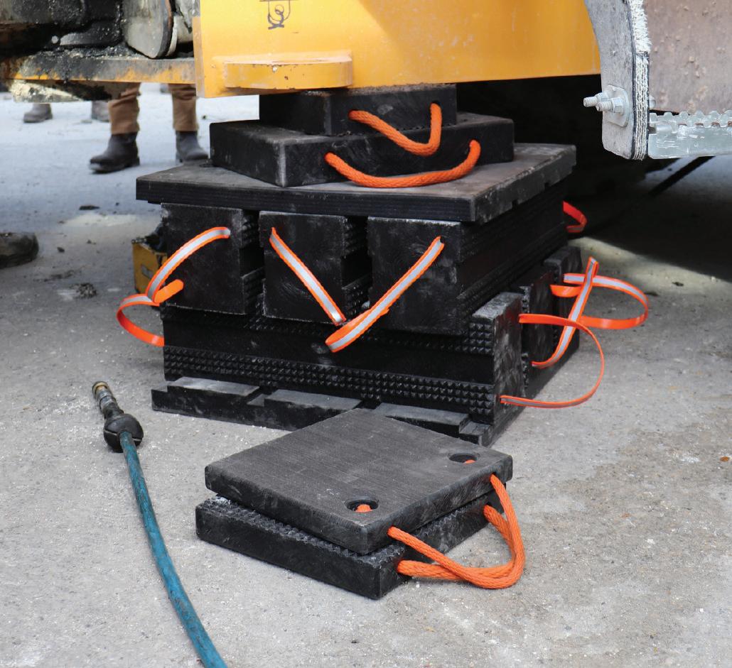 Colored-coded lanyards depict each cribbing block’s working-load limit, at a glance.