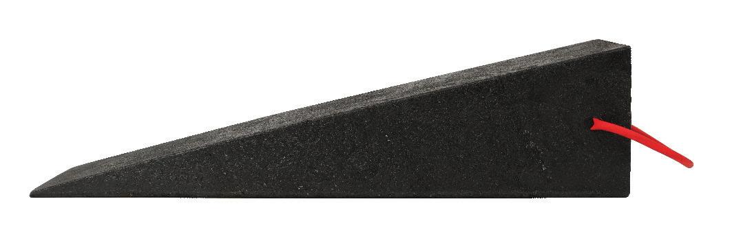 POSITION CHOCK SNUGLY BEHIND THE TIRE. KICK/TAP CHOCK INTO PLACE.