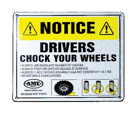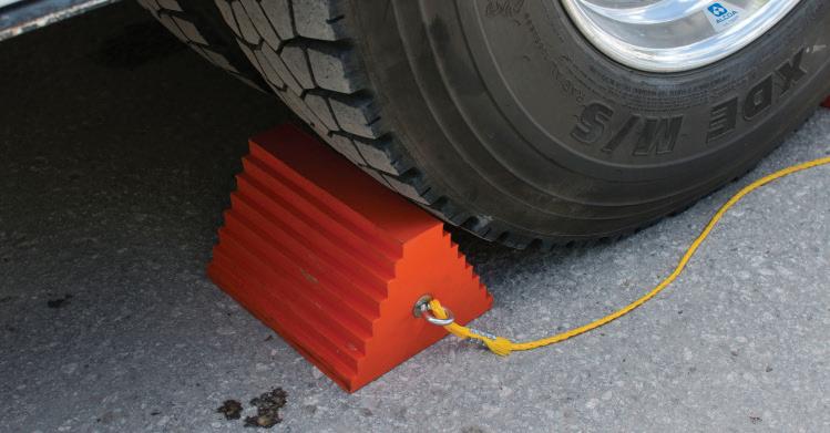 Your wheels must be chocked before loading or unloading. Consider your environment and the condition of the ground surface when selecting a wheel chock. Always use adequate number of chocks. Always ensure your parking brake is set. Never drive over chocks.