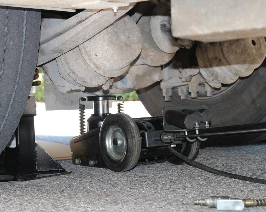 CHOCK BOTH SIDES OF WHEEL WHEN WORKING ON LEVEL SURFACE OR FOR ADDED SECURITY