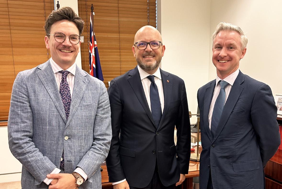 The Hon Minister Madeleine King, The Hon Minister Don Farrell, & EU Ambassador to Australia, Gabriele Visentin