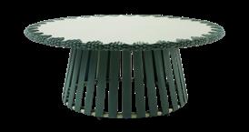 Challengés par la CFOC, les artisans du Guangdong (Chine) ont associé des fibres synthétiques, souples et résistantes, au métal. Ils ont percé l’aluminium du plateau des tables, ils y ont ajouté un minutieux tressage qui ressemble à s’y méprendre à de l’osier naturel.