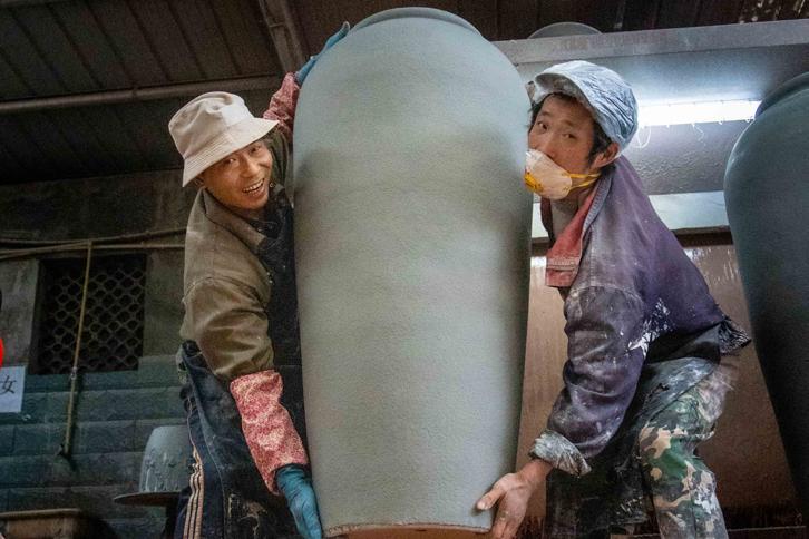 C’est la terre de Yixing, une ville située à 200 kilomètres de Shanghai, qui fait de ces jarres des objets si particuliers. C’est aussi le talent des potiers qui, par leurs gestes agiles et leur expertise, donnent naissance à ces pots uniques. Dans une même couleur, elles peuvent présenter des variations de nuances et de coulures. Qu’importe, elles s’accordent entre elles : leurs différences contribuent à leur beauté intemporelle, exceptionnelle.