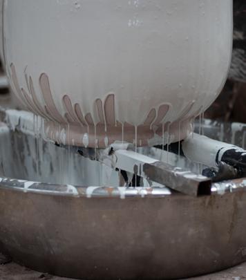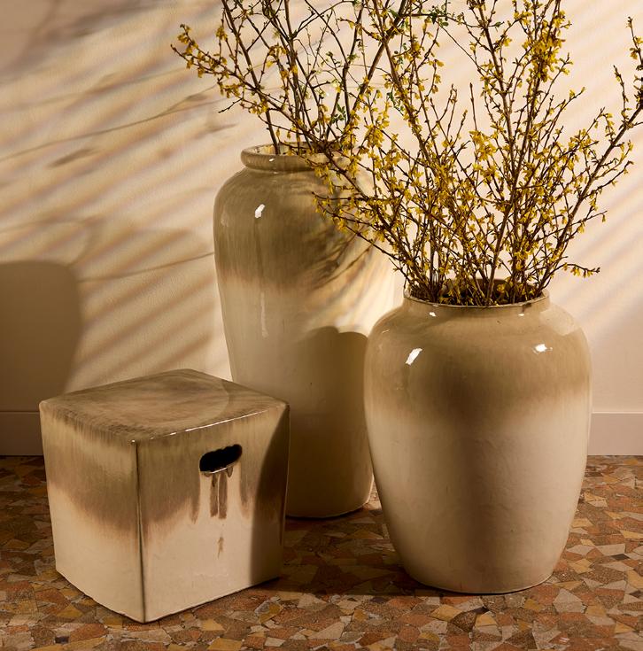 Les glaçures sont aléatoires, rendant chaque pot unique. Des pièces d’exception fabriquées manuellement selon la technique du façonnage à la feuille à l’aide de moules spécifiques.