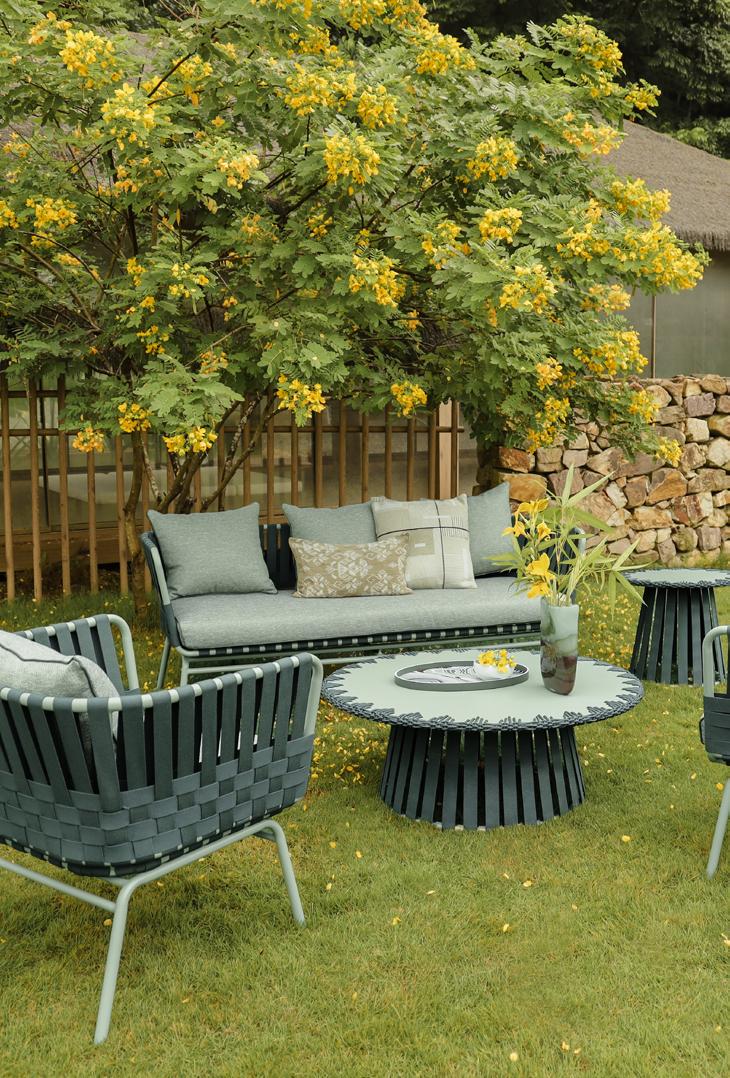 Un mobilier outdoor joyeux, rayonnant, qui joue avec les tonalités verveine et tilleul. Un artisanat qui allie savoir-faire traditionnels et innovations techniques.
