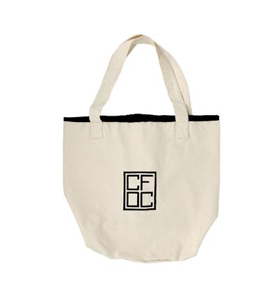 • Depuis 2019, la CFOC a choisi de proposer des sacs réutilisables en toile de coton brut non traitée. Un biais noir à l'ouverture, un logo sur le devant et la baseline au dos ajoutent une touche élégante. Le fond est rond.