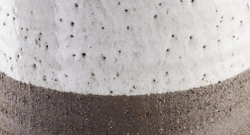 Pour la ligne Terra, les artisans assemblent un bandeau de terre émaillée blanc et une base de terre noire, brute et authentique. Ce pot lourd et massif est parsemé d’irrégularités.