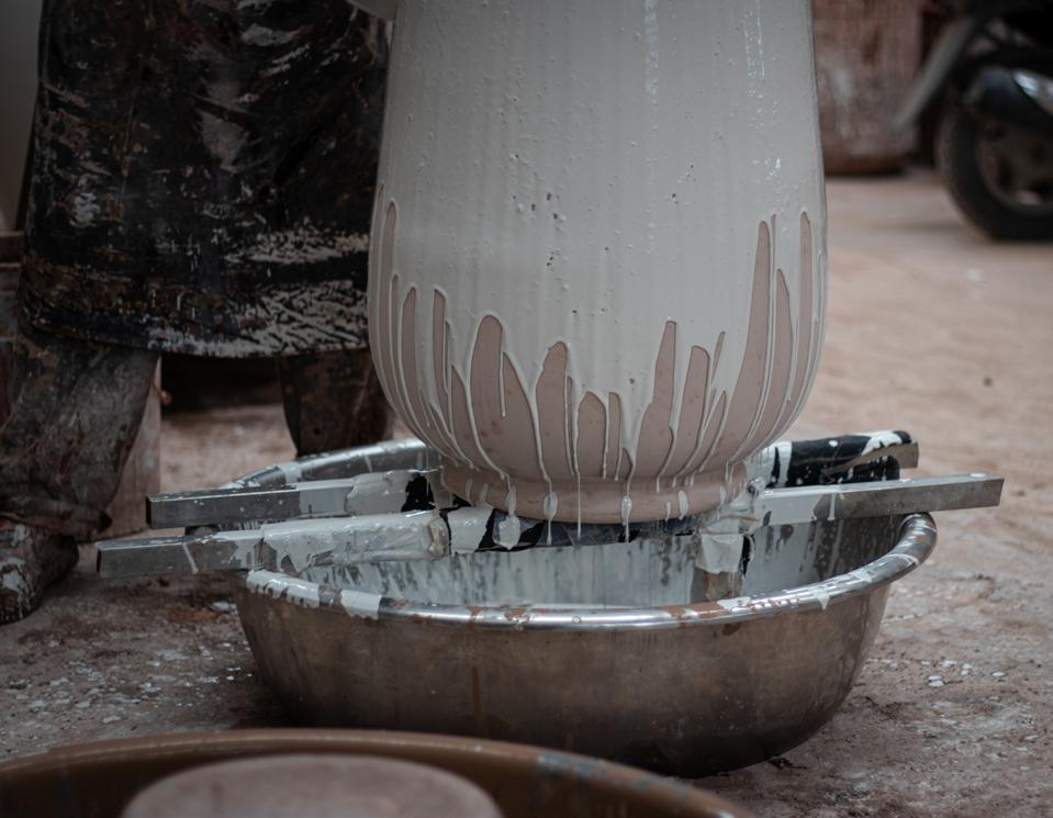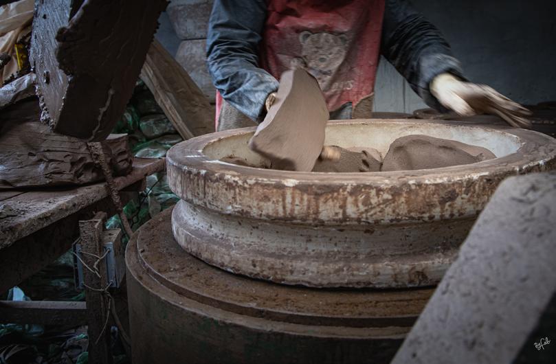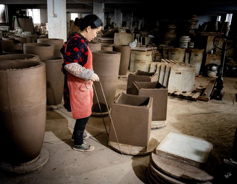 C’est la terre de Yixing, une ville située à 200 km de Shanghaï, qui fait la spécificité des pots de la CFOC. C’est aussi le savoir- faire des artisans qui travaillent l’argile à la main, avec des gestes ancestraux. La relation de confiance qui règne entre le bureau de création parisien et les potiers chinois leur permet d’exprimer pleinement leur talent. Les pots sont cuits à très haute température, pour obtenir des couleurs toujours plus intenses et une résistance aux températures extrêmes. Dans une même tonalité, les pots peuvent présenter des irrégularités qui soulignent leur caractère artisanal : ce sont ces différences qui leur donnent une beauté intemporelle, exceptionnelle.