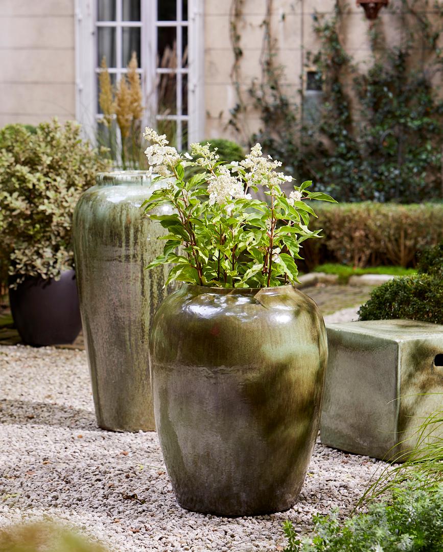Chacune de nos pièces est unique, réalisée à la main grâce au savoirfaire de nos compagnons artisans. Des variations de couleurs peuvent apparaître d’une pièce à l’autre, elles révèlent toute l’authenticité de cette pièce. Les jarres sont percées d’un trou et résistent au gel.